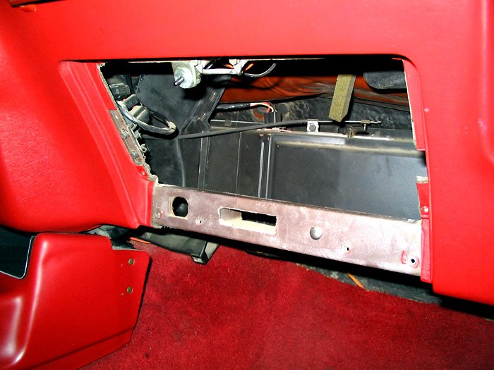 Access to the center speaker area is via the glove box, which must be dismantled.