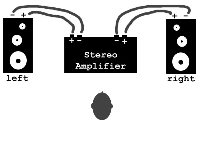 the "+" terminals wired to the "+" terminals of the amplifier. A conventional system is