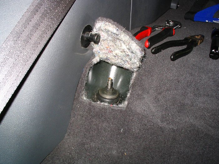 shock bolt by removing part of the carpet. On 4th gens, it's a tad easier: simply folding