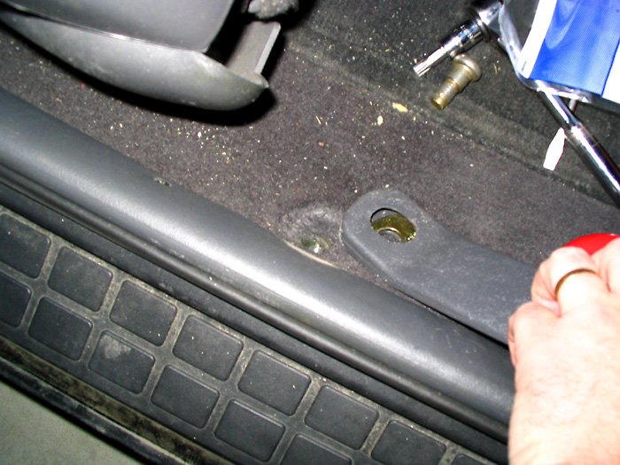 the seat belt anchor).