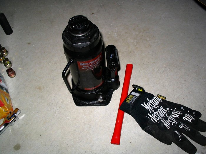 A small jack helps in raising and lowering the rear axle to help with shock absorber