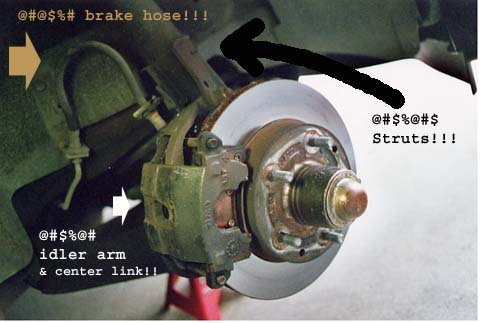 Truth is, the car was hurting. The front struts were gone (again! I'd already replaced them in late 1994), the steering was a bit loose (again! I'd replaced idler arm and center link in late 1994!), and the brakes felt like they were seizing... stomp on the brakes and they would refuse to budge, release the pedal and they'd grab momentarily before allowing the car to move on. Not to mention that the car would pull randomly on hard braking.