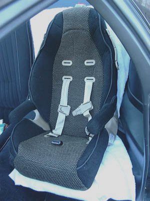 does indeed fit perfectly in the backseat of a third gen F-car. Note the towel serving to