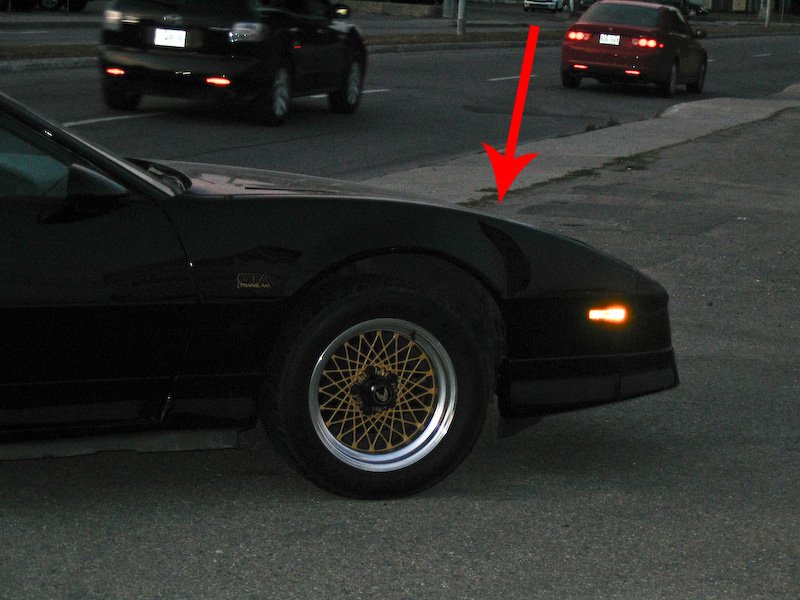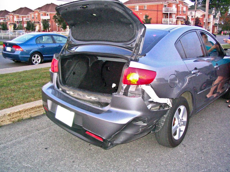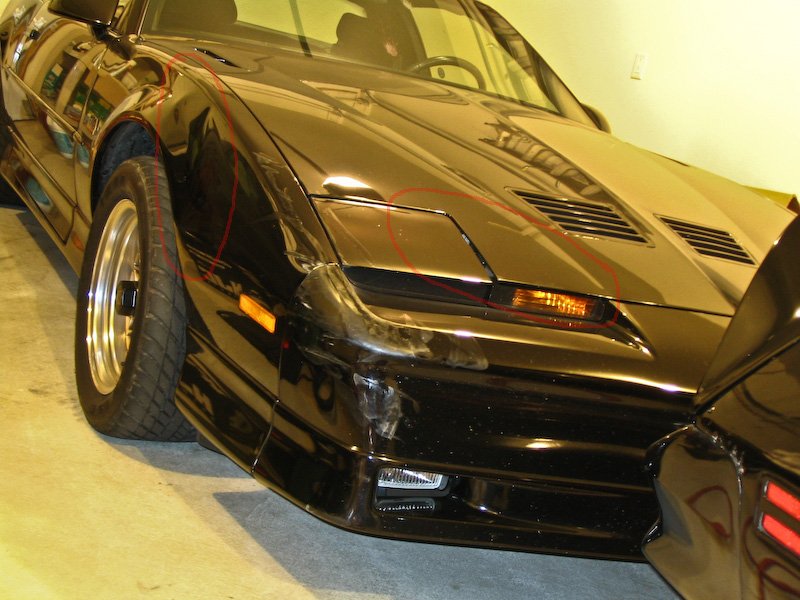 The offset contact between my car and her bumper had left the nose badly scraped and the fender slightly buckled.