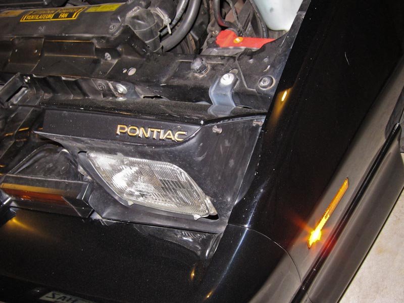 I only got as far as replacing the side marker bulb, before retreating to nurse my scraped and cut arms. Typical 1980s General Motors design.