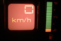 The next mini-pod is the speedo/turn-signal/hi-beam cluster. The speedo can read in 1 kph increments