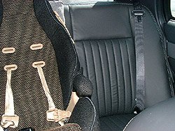 adjustment buttons on the door panels. The perforated leather seats with "french seam" stitching