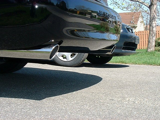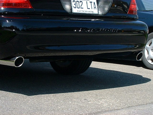 highly polished outlets finish off the true dual exhaust system found on this car (complete
